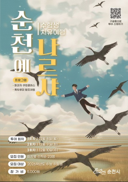 ¼öÇè»ý¿¡°Ô ¼±¹°ÇÏ´Â °¨¼º Èú¸µ ¿©Çà, ¡®¼øÃµ¿¡ ³ª¸£»þ¡¯ ¿î¿µ µðÀúÆ®¡¤Å½Á¶‧Çʸ§ °¨¼º±îÁö ´õÇÑ Æ¯º°ÇÑ ÇÏ·ç ¼øÃµ½Ã°¡ ¿ÃÇØ ¼ö´ÉÀ» ¸¶Ä£ û¼Ò³âµé¿¡°Ô Ưº°ÇÑ Èú¸µÀÇ ½Ã°£À» ¼±¹°ÇÑ´Ù. ½Ã´Â ¿À´Â 8ÀϺÎÅÍ 10ÀϱîÁö 3Àϰ£ ¼öÇè»ý ´ë»ó ÀÚ¿¬ Èú¸µ ÇÁ·Î±×·¥ ¡®¼øÃµ¿¡ ³ª¸£»þ¡¯¸¦ ¿î¿µÇÑ´Ù°í ¹àÇû´Ù. ...
