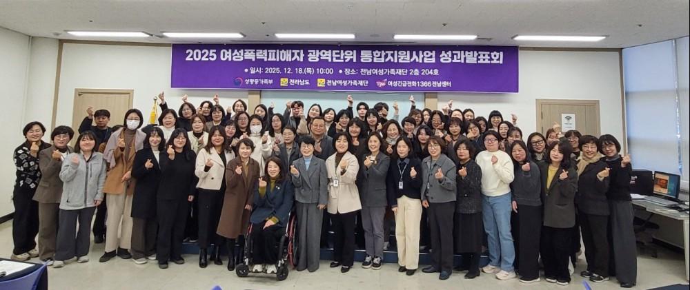 Àü³²¿©¼º°¡Á·Àç´Ü(¿øÀå ¼ºÇý¶õ)ÀÌ ¿î¿µÇÏ´Â ¿©¼º±ä±ÞÀüÈ1366Àü³²¼¾ÅÍ´Â 12¿ù 18ÀÏ(¸ñ), Àü³²¿©¼º°¡Á·Àç´Ü 204È£¿¡¼ ¡¸2025³â ¿©¼ºÆø·ÂÇÇÇØÀÚ ±¤¿ª´ÜÀ§ ÅëÇÕÁö¿ø»ç¾÷ ¼º°úº¸°íȸ¡¹¸¦ °³ÃÖÇß´Ù.
