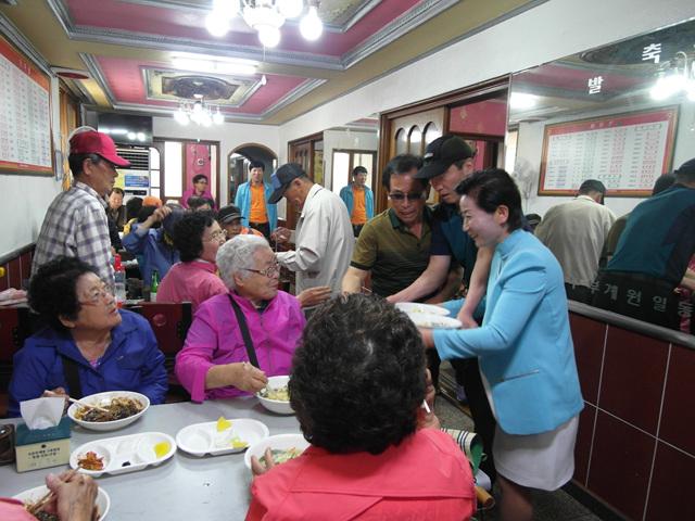 Á¶°îµ¿Àå ¹× ÅëÀå 10¸íµµ À½½Ä ÁÖ¹® ¹Þ±â¿Í ³ª¸£±â¸¦ ÀÚóÇÏ¸ç ºÀ»çÇÏ´Â ±â»ÝÀ» ´©·È´Ù.