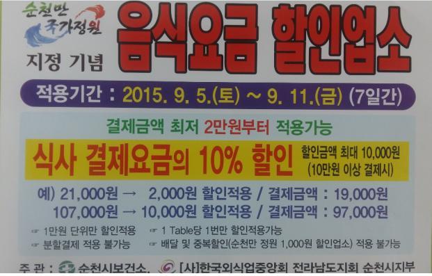 ¿Ü½Ä¾÷ ¼øÃµ½ÃÁöºÎÀå(±è»óÈñ)Àº "Á¦1È£ ¼øÃµ¸¸±¹°¡Á¤¿ø ÁöÁ¤À» ÃàÇÏÇÏ¸ç ¾ÕÀ¸·Î ¸¹Àº °ü±¤°´ÀÇ ¹æ¹®¿¡ ´ëºñÇØ ¿Ü½Ä¾÷°èµµ ÃÖ»óÀÇ ¼ºñ½º·Î ¼Õ´Ô¸ÂÀÌ¿¡ ³ë·ÂÇϰÚÀ¸¸ç, À̹ø ÇÒÀÎÁÖ°£À» ÅëÇØ ¼øÃµÀÇ À½½ÄÁ¡ÀÌ ¸¹ÀÌ È«º¸µÇ¾úÀ¸¸é ÁÁ°Ú´Ù.¡°°í ¹àÇû´Ù.