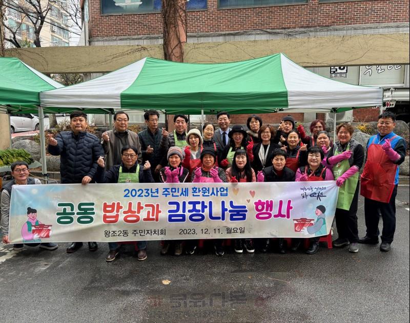 ÀÌ¿µ¼® ÁÖ¹ÎÀÚġȸÀåÀº ¡°¹°°¡ »ó½ÂÀ¸·Î ¾î·Á¿î ½Ã±â¿¡ À̹ø ±èÀå ³ª´® Çà»ç·Î ¿ÕÁ¶2µ¿ Ãë¾à°èÃþÀÌ µû¶æÇÑ ¿¬¸»À» º¸³»±æ ¹Ù¶õ´Ù¡±¶ó¸ç, ¡°¾ÕÀ¸·Îµµ ÀÌ¿ô µ¹º½ÀÇ °ø¹éÀÌ »ý±âÁö ¾Êµµ·Ï ¼Ò¿ÜµÈ ÀÌ¿ôÀ» À§ÇÑ ³ª´®¹®È È®Àå¿¡ ¾ÕÀå¼ µû¶æÇÑ µ¿³×¸¦ ¸¸µé°Ú´Ù¡±¶ó°í ¹àÇû´Ù.