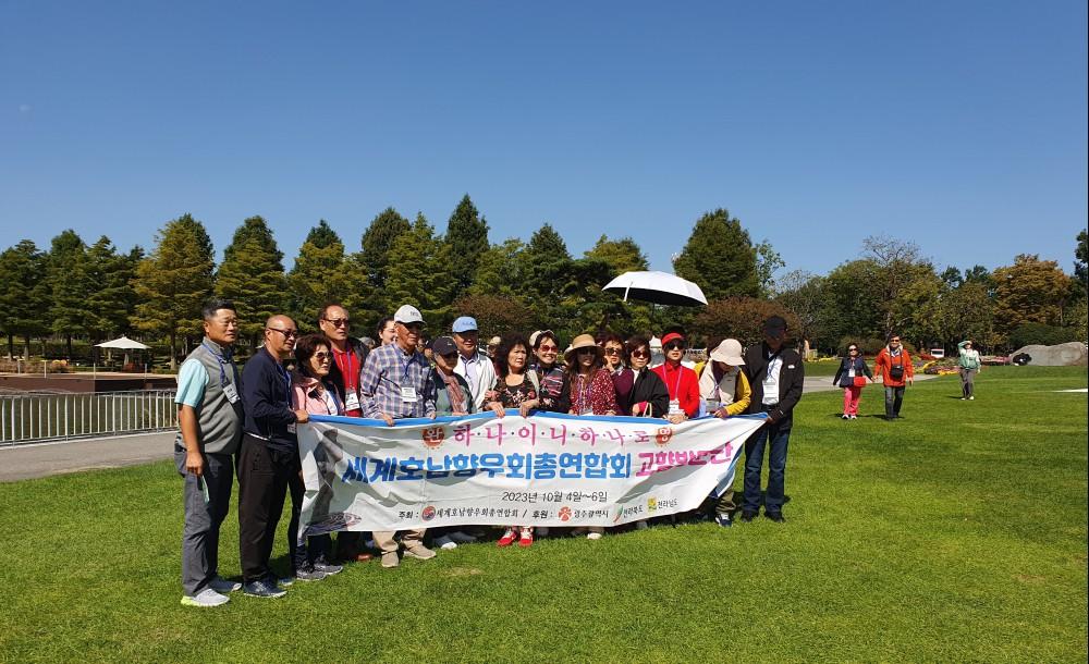 ¼¼°èÈ£³²Çâ¿ìȸ ÃÑ¿¬ÇÕȸ(ȸÀå ±è´Þ¹ü, ÀϺ»°ÅÁÖ) °íÇâ¹æ¹®´Ü ÀÏÇà 300 ¿© ¸íÀº 10¿ù 5ÀÏ ¿ÀÀü¿¡ ¼øÃµ¸¸±¹Á¦Á¤¿ø¹Ú¶÷ȸ¸¦ ã¾Æ ¸¼Àº Çϴðú Á¤¿øÀÇ ²ÉµéÀ» °¨»óÇÏ¸ç ¿À·£¸¸¿¡ ã¾Æ¿Â °íÇâÀÇ °¡À»Á¤Ã븦 ¸¶À½²¯ ´©¸®¸ç ź¼ºÀ» ÀھƳ´Ù.