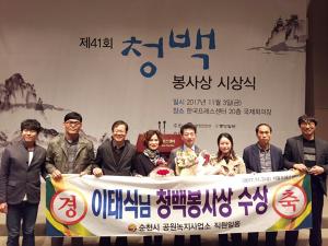 ¼øÃµ½Ã °ø¿ø³ìÁö»ç¾÷¼Ò¿¡ ±Ù¹«ÇÏ´Â ÀÌÅÂ½Ä °ø¿ø°ü¸®´ã´çÀÌ ¡®2017³â Á¦41ȸ û¹éºÀ»ç»ó¡¯ º»»óÀ» ¼ö»óÇß´Ù.