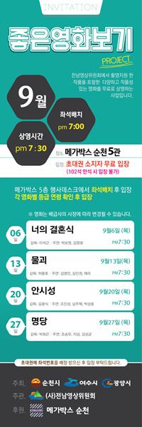 ¼øÃµ½Ã´Â Áö¿ª¿¡¼ ÃÔ¿µµÇ¾ú°Å³ª ÀÛǰ¼º ÀÖ´Â ¿µÈ¸¦ ¹«·á·Î »ó¿µÇÏ´Â 'ÁÁÀº ¿µÈº¸±â ÇÁ·ÎÁ§Æ®¡®°¡ ¿À´Â 9¿ù 6ÀÏ ~ 27ÀϱîÁö ¸ÅÁÖ ¸ñ¿äÀÏ Àú³á 7½Ã 30ºÐ ¼øÃµ ¸Þ°¡¹Ú½º(´ö¾ÏÁ¡)¿¡¼ Àü³²¿µ»óÀ§¿øÈ¸ ÁÖ°üÀ¸·Î ÁøÇàµÈ´Ù.