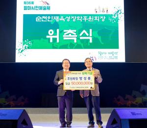Á¦ 36ȸ ÆÈ¸¶½Ã¹Î¿¹¼úÁ¦ °³¸·Çà»çÀå¿¡¼ ÁøÇàµÈ À§Ã˽Ŀ¡¼ ¹æ¼º·æ ÈÄ¿øÈ¸ÀåÀº ¼øÃµÀÇ ÀÎÀç¾ç¼ºÀ» À§ÇÑ ÀåÇбâ±Ý 5õ¸¸¿øÀ» ±âŹÇÏ¸ç ¼øÃµ½ÃÀÎÀçÀ°¼ºÀåÇбâ±Ý 200¾ï¿ø Á¶¼º ¸ñÇ¥¸¦ ´Þ¼ºÇÒ ¼ö ÀÖµµ·Ï ³ë·ÂÇÏ°Ú´Ù°í ¹àÇû´Ù.