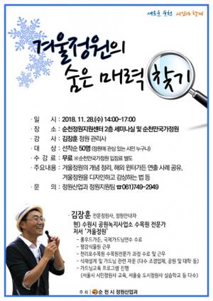 ¼øÃµ½Ã¿¡¼´Â 11¿ù 28ÀÏ (¼ö) ¿ÀÈÄ 2½Ã Àü¹® Á¤¿ø °ü¸®»ç¿Í ÇÔ²² °Ü¿ï¿¡µµ ¾Æ¸§´Ù¿î Á¤¿øÀ» ¸¸µå´Â ¿µ°¨°ú, °Ü¿ïÁ¤¿ø¿¡ ´ëÇÑ ÀÌÇØ¸¦ ³ÐÈ÷´Â ±âȸ°¡ µÇ´Â ¡®°Ü¿ïÁ¤¿øÀÇ ¼ûÀº ¸Å·Â ã±â¡¯ Ư°À» ¿î¿µÇÒ °èȹÀ̶ó°í Çß´Ù.