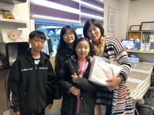 ¹æ°úÈľÆÄ«µ¥¹Ì ÅԹ翡¼ ¼öÈ®ÇÑ ¶¥ÄáÀ» Àç·á·Î û¼Ò³âµéÀÌ Á÷Á¢ ±¸¿î ÄíŰ¿Í °¨»çÀÇ ¸¶À½À» ´ãÀº ¼ÕÆíÁö¸¦ Áö¿ª¿¬°è ±â°ü¿¡ ¹æ¹®ÇØ Àü´ÞÇß´Ù.