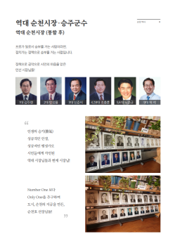 ¸ñÂ÷´Â ¼øÃµ¿ª»ç, °Ýµ¿°ú µµ¾à, ±×¶§ ±× ½ÃÀý, ±×¶§¿Í Áö±Ý ¼øÀ̸ç ÁÖ¿ä³»¿ëÀ¸·Î´Â ¼øÃµÀÇ ÃÖÃʵé°ú ¿ª´ë ½ÃÁ¤±¸È£¸¦ ºñ·ÔÇÑ 1962³â ±â·ÏÀûÀÎ ¼öÇØ, 1995³â ¼øÃµ½Ã¡¤½ÂÁÖ±º ÅëÇÕ, 2013³â ¼øÃµ¸¸±¹Á¦Á¤¿ø¹Ú¶÷ȸ, 2019³â 1,000¸¸ °ü±¤°´ ½Ã´ë µîÀÌ Âª°Ô Á¤¸®µÆ´Ù.