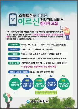 ¼øÃµ½Ã(½ÃÀå Çã¼®)´Â º¸°Çº¹ÁöºÎ ÁÖ°ü ¡®2020³â AI¡¤IoT±â¹Ý ¾î¸£½Å °Ç°°ü¸® ¼ºñ½º¡¯°ø¸ð»ç¾÷¿¡ ¼±Á¤µÇ¾î Äڷγª19·Î ÀÎÇØ ´õ¿í Çʿ伺ÀÌ ´ëµÎµÇ°í ÀÖ´Â ºñ´ë¸é ¾î¸£½Å °Ç°°ü¸® »ç¾÷À» ½ÃÇàÇÑ´Ù.