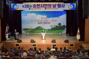¼øÃµ½Ã(½ÃÀå Çã¼®)°¡ 15ÀÏ ¿ÀÀü 10½Ã ¼øÃµ¹®È°Ç°¼¾ÅÍ ´Ù¸ñÀûȦ¿¡¼ Á¦26ȸ ¼øÃµ½Ã¹ÎÀÇ ³¯ ±â³ä½ÄÀ» °³ÃÖÇß´Ù.