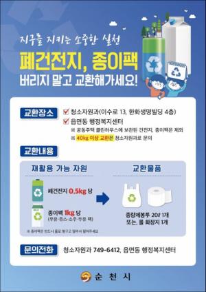 ¼øÃµ½Ã(½ÃÀå Çã¼®)´Â ÀçȰ¿ëµÇÁö ¸øÇÏ°í Æó±âµÇ´Â Á¾ÀÌÆÑ°ú Æó°ÇÀüÁö·Î ÀÎÇÑ È¯°æ¿À¿°À» ¹æÁöÇϱâ À§ÇØ Á¾ÀÌÆÑ¡¤Æó°ÇÀüÁö ±³È¯»ç¾÷À» 2¿ùºÎÅÍ È®´ëÇÏ¿© ÃßÁøÇÑ´Ù.