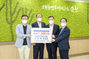 À̳¯ Àü´Þ½Ä¿¡¼ ¼øÃµ½ÃÀÇȸ ÀÇ¿øÀ¸·Î Ȱµ¿Çϰí ÀÖ´Â ¹ÚÀç¿ø ¼¼¹«»ç 3¹é¸¸¿ø, ¼øÃµ½Ã»ê¸²Á¶ÇÕ(Á¶ÇÕÀå Á¶Á¤·Ï)¿¡¼ 1õ¸¸¿øÀÇ ÈÄ¿ø±ÝÀ» ¼øÃµ½ÃÀÎÀçÀ°¼ºÀåÇÐȸ¿¡ Àü´ÞÇß´Ù. ¼øÃµ½Ã»ê¸²Á¶ÇÕÀº Áö±Ý±îÁö ÃÑ 3õ1¹é¸¸¿øÀ» ÈÄ¿øÇß´Ù.