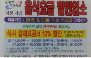 [»çȸ/°æÁ¦] ¼øÃµ½Ã ¿Ü½Ä¾÷, ¼øÃµ¸¸±¹°¡Á¤¿ø ¼±Æ÷±â³ä ¡°À½½Ä¿ä±Ý ÇÒÀÎÁÖ°£¡± ¿î¿µ