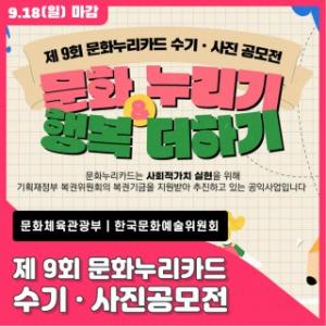 [»çȸ/°æÁ¦] Çѱ¹¹®È¿¹¼úÀ§¿øÈ¸, Á¦9ȸ ¹®È´©¸®Ä«µå ¼ö±â¡¤»çÁø°ø¸ðÀü ¡°¹®È ´©¸®±â, Çູ ´õÇϱ⡱ ½ÅûÁ¢¼ö 9¿ù 18ÀϱîÁö ±âÇÑ¿¬Àå