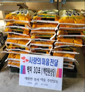 Áö³ 27ÀÏ ¼øÃµ½Ã ÇØ·æ¸é ºÀ¼¸¶À» ÁֹεéÀÌ 1¹é¸¸ ¿ø »ó´çÀÇ 10§¸ ÇÝ½Ò 30Æ÷¸¦ ÇØ·æ¸éÇàÁ¤º¹Áö¼¾ÅÍ¿¡ ±âºÎÇß´Ù.