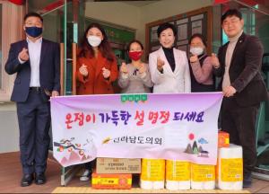Àü³²µµÀÇȸ ³ó¼ö»êÀ§¿øÈ¸ ÇÑÃá¿Á ÀÇ¿ø(´õºÒ¾î¹ÎÁÖ´ç, ¼øÃµ2)Àº Áö³ 12ÀÏ ¼³ ¸íÀýÀ» ¾ÕµÎ°í ¼øÃµ½Ã¿¡ ÀÖ´Â º°·®¿ä¾ç¿ø°ú »ç¶û½Ç¹öºôÀ» ã¾Æ À§¹®Ç°À» Àü´ÞÇÏ°í ½Ã¼³ °ü°èÀÚ¸¦ °Ý·ÁÇß´Ù.