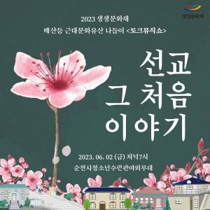 ¼øÃµ½Ã´Â 2023³â ¼øÃµ½Ã »ý»ý¹®ÈÀç Ȱ¿ë»ç¾÷ÀÇ ÀÏȯÀ¸·Î 6¿ù 2ÀÏ, ¡®¼±±³ ±× óÀ½ À̾߱⡯ ÅäÅ©¹ÂÁ÷¼î¸¦ °³ÃÖÇÑ´Ù°í ¹àÇû´Ù. º» ÇÁ·Î±×·¥Àº ¼±±³¿ª»ç¿¡ ´ëÇÑ À̾߱⸦ Àü¹®°¡¿ÍÀÇ ÅäÅ©¸¦ ÅëÇØ ÀÌÇØÇϰí, À½¾ÇÀÌ ¾î¿ì·¯Á® ´õ¿í dz¼ºÇÏ°Ô ±âȹµÈ ÇÁ·Î±×·¥À¸·Î ½Ã¹Î, °ü±¤°´, Çлý, °¡Á· µî ´©±¸³ª Áñ±æ ¼ö ÀÖµµ·Ï °³¹æµÇ¾î ¿î¿µµÉ ¿¹Á¤ÀÌ´Ù.
