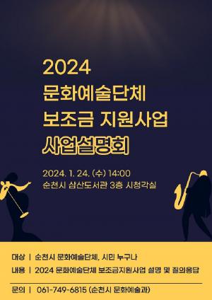 [¹®È/ȯ°æ] ¼øÃµ½Ã, 2024¹®È¿¹¼ú´Üü º¸Á¶±Ý Áö¿ø»ç¾÷ »ç¾÷¼³¸íȸ °³ÃÖ