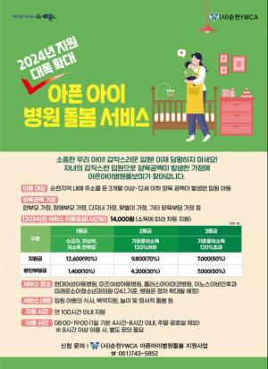 ¾ÆÇ¾ÆÀÌ º´¿øµ¹º½ ¼ºñ½º °ü·Ã ¹®ÀÇ´Â (»ç)¼øÃµYWCA(¢Ï061-743-5852)·Î ÇÏ¸é µÈ´Ù.