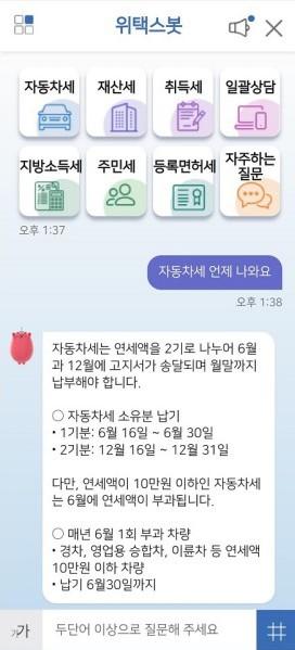 ¡®À§Åýºº¿¡¯À» ÀÌ¿ëÇϱâ À§Çؼ´Â īī¿ÀÅå Áö¹æ¼¼ »ó´ã À§Åýºº¿ ä³ÎÀ» Ȱ¿ëÇϰųª ÀÎÅͳݰú ½º¸¶Æ®Æù¿¡¼ Áö¹æ¼¼ ´©¸®Áý(wetax.go.kr)¿¡ Á¢¼ÓÇÏ¸é ½±°Ô ÀÌ¿ëÇÒ ¼ö ÀÖ°í, Áö¹æ¼¼ °íÁö¼ ³» ¡®À§Åýºº¿¡¯ QRÄÚµå Á¢¼ÓÀ¸·Îµµ ÀÌ¿ë °¡´ÉÇÏ´Ù.