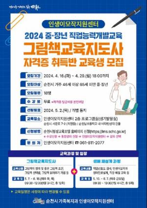 ¼øÃµ½Ã(½ÃÀå ³ë°ü±Ô) ÀλýÀ̸ðÀÛÁö¿ø¼¾ÅÍ´Â Áß‧Àå³â Á÷¾÷´É·Â°³¹ßÀÇ ÀÏȯÀ¸·Î ±×¸²Ã¥±³À°Áöµµ»ç 3±Þ ÀÚ°ÝÁõ¹ÝÀ» °³¼³ÇÏ°í ¿À´Â 29ÀϱîÁö ¼ö°»ýÀ» ¸ðÁýÇÑ´Ù°í ¹àÇû´Ù.
