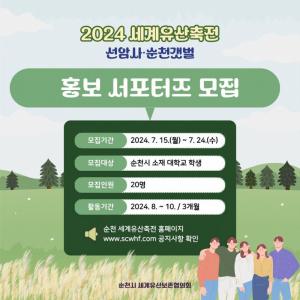 ¼øÃµ½Ã ¼¼°èÀ¯»êº¸Á¸ÇùÀÇȸ(À§¿øÀå ±èÁؼ±)´Â 2024 ¼¼°èÀ¯»êÃàÀü-¼±¾Ï»ç¡¤¼øÃµ°¹¹ú °³ÃÖ¿¡ µû¸¥ »çÀü È«º¸ÀÇ ÀÏȯÀ¸·Î ¿À´Â 15ÀϺÎÅÍ 24ÀϱîÁö ¼Æ÷ÅÍÁ ¸ðÁýÇÑ´Ù.