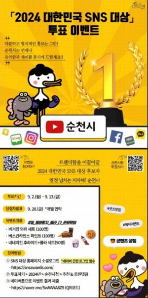 ¼øÃµ½Ã(½ÃÀå ³ë°ü±Ô)´Â ¿À´Â 13ÀϱîÁö Àü ±¹¹ÎÀ» ´ë»óÀ¸·Î ¡®2024 ´ëÇѹα¹ SNS ´ë»ó ÅõÇ¥ À̺¥Æ®¡¯¸¦ ÁøÇàÇÑ´Ù°í ¹àÇû´Ù.