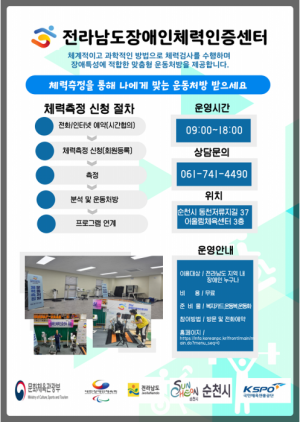 [»çȸ/°æÁ¦] ¼øÃµ½Ã, Àü³²Àå¾ÖÀÎü·ÂÀÎÁõ¼¾ÅÍ Àӽà ¿î¿µ ¡®Ã¼·ÂÃøÁ¤ÇÏ·¯ ¿À¼¼¿ä~¡¯