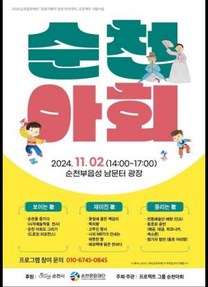 (Àç)¼øÃµ¹®ÈÀç´Ü¿¡¼ ÁÖ°üÇÏ´Â ¡®¹®È±âȹÀÚ ¾ç¼º ¾ÆÄ«µ¥¹Ì¡¯ ½ÉȰúÁ¤ ¿ì¼öÆÀÀÌÀÚ Àü¹®°¡ °úÁ¤ ¼ö·áÆÀÀÇ ÇÁ·ÎÁ§Æ® ¡®¼øÃµ¾ÆÈ¸¡¯¿Í ¡®ÀºÇÏ¿¡ ¶ç¿î ºû°ú ¼Ò¸®¡¯°¡ ¿À´Â 2ÀÏ ¿ÀÈÄ 2½Ã ³²¹®ÅÍ ±¤Àå, ¿ÀÈÄ 3½Ã 30ºÐ ÀúÀü³ª´®ÅÍ¿¡¼ °¢°¢ ÁøÇàµÈ´Ù.