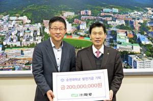 ±¹¸³ ¼øÃµ´ëÇб³(ÃÑÀå ¹ÚÁø¼º)´Â Áö³ 21ÀÏ ¢ßÆÄ·ç(´ëÇ¥ °¹®½Ä)°¡ ¹ßÀü±â±Ý 2¾ï ¿øÀ» ±âŹÇß´Ù°í ¹àÇû´Ù.