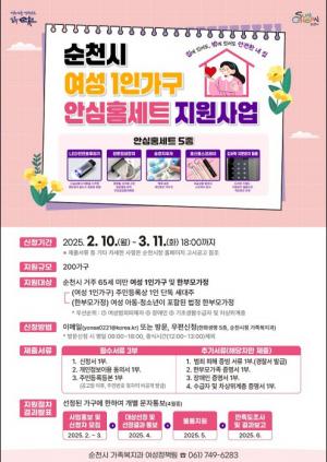 [»çȸ/°æÁ¦] ¼øÃµ½Ã, ¿©¼º 1Àΰ¡±¸ ¹× ÇѺθð°¡Á¤ ´ë»ó ¾È½ÉȨ¼¼Æ® Áö¿ø