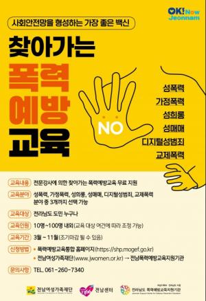 Àç´ÜÀº Áö³ 2015³âºÎÅÍ Àü³²Æø·Â¿¹¹æ±³À°Áö¿ø±â°üÀ¸·Î ÁöÁ¤µÇ¾î ±³À°À» ¹ÞÀº µµ¹ÎÀÌ Æø·Â¿¡ ´ëÇÑ ¹Î°¨¼ºÀ» Çâ»ó½Ãų ¼ö ÀÖµµ·Ï ¹«·á·Î ±³À°À» Áö¿øÇؿԴÙ.