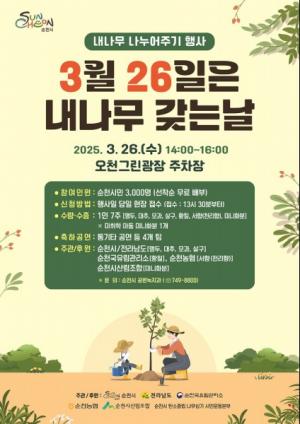 ¼øÃµ½Ã(½ÃÀå ³ë°ü±Ô)´Â ¿À´Â 26ÀÏ ¿ÀÈÄ 2½Ã ¿Àõ±×¸°±¤Àå ÁÖÂ÷Àå¿¡¼ ¡¸³»³ª¹« ³ª´©¾îÁÖ±â Çà»ç¡¹¸¦ °³ÃÖÇÑ´Ù°í ¹àÇû´Ù.