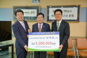 [»çȸ/°æÁ¦] ¼øÃµ ¾Æ¸ð¸£ÄÁº¥¼Ç ³²¹é¿ø´ëÇ¥ ¼øÃµ½ÃÀå¾ÖÀÎüÀ°È¸ ÈÄ¿ø±Ý Àü´Þ