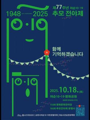 77ÁÖ³âÀ» µÇ»õ±â¸ç, ¡°ÇÔ²² ±â¾ïÇϰڽÀ´Ï´Ù¡±¸¦ ÁÖÁ¦·Î ¿©¼ø»ç°ÇÀÇ Èñ»ýÀÚ¸¦ Ã߸ðÇϰí Áö¿ª»çȸ°¡ ¿ª»ç¸¦ ÇÔ²² ±â¾ïÇÏ¸ç ±× Àǹ̸¦ ´ÙÀ½ ¼¼´ë¿¡ ÀüÇÏ´Â ½Ã¹Î Âü¿©Çü ¹®È¿¹¼ú Çà»ç·Î ÁøÇàµÉ ¿¹Á¤ÀÌ´Ù.