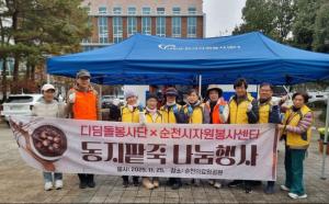 ¼øÃµ½ÃÀÚ¿øºÀ»ç¼¾ÅÍ(¼¾ÅÍÀå À̽ż÷)´Â Áö³ 11¿ù 25ÀÏ ¼øÃµµµ¸³ÀÇ·á¿ø °ø¿ø¿¡¼ µðµõµ¹ ºÀ»ç´Ü(´ÜÀå ±è¼±ÀÍ)°ú ÇÔ²² µ¿Áö¸¦ ¸Â¾Æ Áö¿ª ¾î¸£½ÅµéÀ» À§ÇÑ ¡®µ¿ÁöÆÏÁ× ³ª´®Çà»ç¡¯¸¦ ÁøÇàÇß´Ù°í ¹àÇû´Ù. À̳¯ Çà»ç¿¡¼´Â µ¶°Å¾î¸£½Å µî Áö¿ª ³» Ãë¾à°èÃþ ¾î¸£½Å 500¸í¿¡°Ô µû¶æÇÑ ÆÏÁ×À» Á¦°øÇÏ¸ç °Ü¿ïö °Ç°°ú ¾ÈºÎ¸¦ »ìÆñ´Ù.