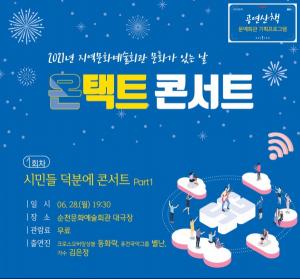 ¼øÃµ½Ã(½ÃÀå Çã¼®)°¡ ½Ã¹Î ÀÏ»ó¿¡ È°·ÂÀ» ºÒ¾î³Ö°í ¹®È¿¹¼ú ÇâÀ¯ ±âȸ¸¦ È®´ëÇϱâ À§ÇØ ¸Å¿ù ¸¶Áö¸· ¼ö¿äÀÏÀÌ ÀÖ´Â ÁÖ°£¿¡ ¡®2021³â Áö¿ª¹®È¿¹¼úȸ°ü ¹®È°¡ ÀÖ´Â ³¯ °ø¿¬»êÃ¥ ¹®¿¹È¸°ü ±âȹ ÇÁ·Î±×·¥¡¯À» ¿î¿µÇÑ´Ù.