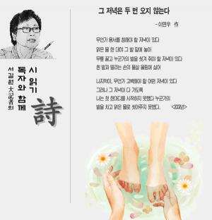 < ÇÔ²² Àбâ> ÀÌ ½ÃÀÎÀÇ ½Ã¿¡´Â ÀڽŸ¸ÀÇ »îÀÇ °æÇèÀÌ ³ì¾ÆÀÖ´Ù. ±×·¯¸é¼µµ ´ÜÁö °íÅë°ú ¼Ò¿Ü¸¸À» µå·¯³»Áö´Â ¾Ê´Â, µû¶æÇÔ°ú ¹Ý¼º°ú Èñ¸ÁÀÌ ´ã°Ü ÀÖ´Ù.