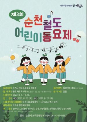 ¼øÃµ½Ã Á¶°îµ¿Àº Á¦3ȸ ¼øÃµÃ¶µµ¾î¸°À̵¿¿äÁ¦¸¦ ¿À´Â 27ÀÏ¿¡ °³ÃÖÇÑ´Ù. °ü³» ÃʵîÇлýÀÌ¸é ´©±¸³ª µ¿¿ä ÀÚÀ¯°î 1°îÀ» ¼±ÅÃÇÏ¿© µ¶Ã¢ ¶Ç´Â 10ÀÎ À̳» ÁßâÀ¸·Î Âü°¡ÇÒ ¼ö ÀÖ´Ù.