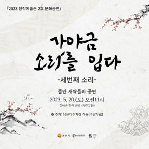 ¿ÃÇØ·Î ¼¼ ¹øÂ°¸¦ ¸ÂÀÌÇÑ ¡®°¡¾ß±Ý, ¼Ò¸®¸¦ ÀÔ´Ù¡¯¾î¸°ÀÌ ±¹¾Ç°ø¿¬Àº ¼øÃµ âÀÛ¿¹¼úÃÌ 2È£ ±èÇý¼ø ÇѺ¹°ø¹æ ¸¶´ç¿¡¼ °³ÃֵǴ ¹®ÈÇà»ç·Î, Çѱ¹ ÀüÅë°ø¿¹ÀÇ ¸Æ(Øæ)À» ÀÕ°íÀÚ ³ë·ÂÇØ ¿Â ±èÇý¼ø ÇѺ¹°ø¹æÀÇ ÀüÅë¹Ì¿Í ¾î¿ì·¯Áö´Â Çѱ¹ ÀüÅë À½¾ÇÀÇ ¹Ì(Ú¸)¸¦ Àü´ÞÇϰíÀÚ ±âȹµÆ´Ù.