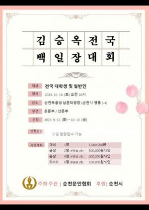 ¼øÃµ½Ã°¡ ÈÄ¿øÇÏ°í ¼øÃµ¹®ÀÎÇùȸ°¡ ÁÖÃÖ¡¤ÁÖ°üÇÏ´Â Á¦17ȸ ±è½Â¿Á Àü±¹¹éÀÏÀå´ëȸ¿Í ¿ÀÇà½Ã ´ëȸ°¡ ´ÙÀ½´Þ 14ÀÏ ¼øÃµºÎÀ¾¼º ³²¹®Åͱ¤Àå¿¡¼ ¿¸°´Ù.