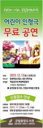°íÈﱺ(±º¼ö ¹Úº´Á¾)Àº ¿À´Â 12ÀÏ ¿ÀÈÄ 2½Ã ±º¸³Áß¾Óµµ¼°ü 4Ãþ ´Ù¸ñÀû½Ç¿¡¼ ¾Æµ¿°ú °¡Á· 100¿© ¸íÀ» ´ë»óÀ¸·Î ÀÎÇü±Ø ¡°¹é¼³°øÁÖ¿Í »µ²û»µ²û ¿Õºñ¡± °ø¿¬À» ÆîÄ¥ ¿¹Á¤ÀÌ´Ù.
