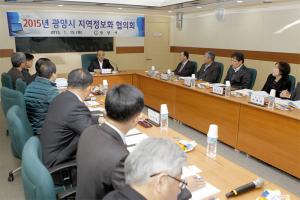 ±¤¾ç½Ã(½ÃÀå Á¤Çöº¹)´Â Áö¿ªÀÇ ¹ßÀü°ú ½Ã¹ÎÀÇ »îÀÇ Áú Çâ»óÀ» À§ÇÏ¿© ½Ã¹Î Áß½ÉÀÇ Ã¼°èÀûÀÎ Á¤º¸È »ç¾÷À» ÃßÁøÄÚÀÚ ¡®2015³âµµ Áö¿ªÁ¤º¸È ½ÃÇà°èȹ¡¯À» ¼ö¸³Çϰí Áö³ 15ÀÏ ¡¸±¤¾ç½Ã Áö¿ªÁ¤º¸È ÇùÀÇȸ¡¹¸¦ °³ÃÖÇß´Ù.